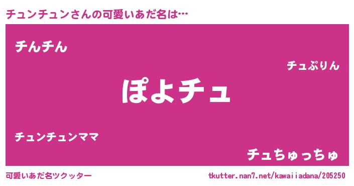 | 恥ずかしいあだ名 | 『プリティーチュンチュン』『チュちん』 |