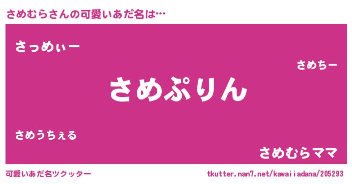 | ヘコむあだ名 | 『さめっ子』『さめむら(爆)』『豆乳』 |
