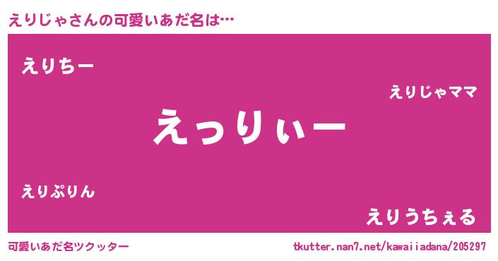 | ヘコむあだ名 | 『えりを』『豆乳』『えりじゃ(苦笑)』 |