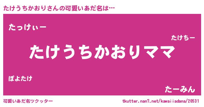 | ヘコむあだ名 | 『たけうちかおり(震え声)』『たけっぺ』 |