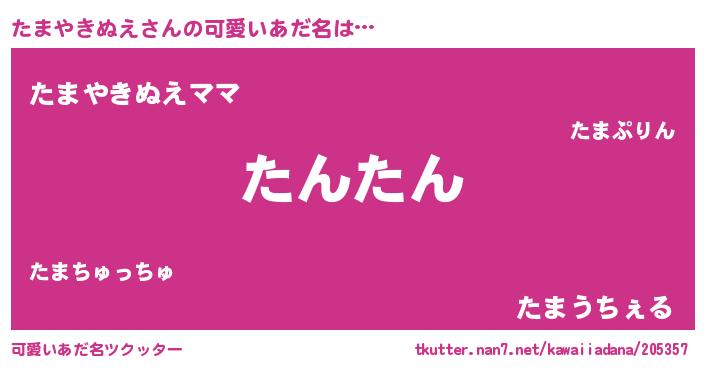 | ヘコむあだ名 | 『たまにゅー』『たまやきぬえ(遠い目)』 |