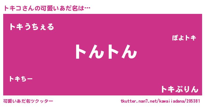 | ヒーロー風カッコイイあだ名 | 『スーパートキコ』『ウルトラ戦士トキコ』 |