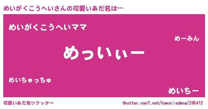 | ヘコむあだ名 | 『めいを』『めいがくこうへい(小並感)』 |