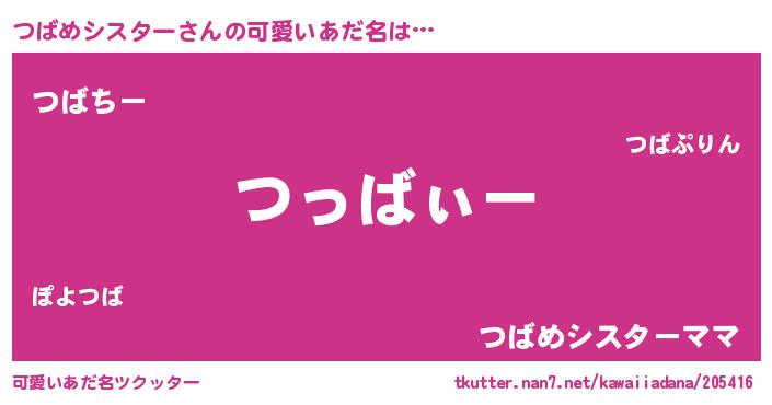 | 男性向けラノベタイトル風あだ名 | 『つばめシスターの嫁は女の子じゃないと思った?』 |