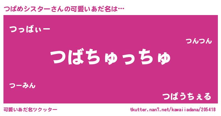 | ポケモン風あだ名 | 『ツックウザ』『ヒツバメシスター』 |