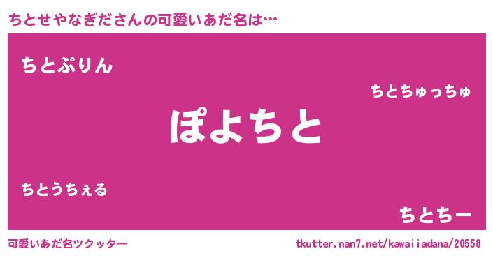 | 意味不明あだ名 | 『住所不定無職ちとせやなぎだ(98歳)』 |
