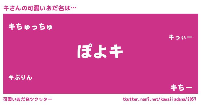 | 料理風あだ名 | 『キのカルパッチョ風』『キの豆乳スープ』 |