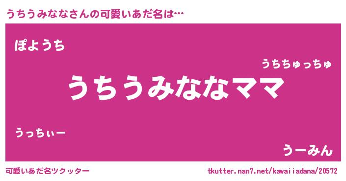 | ヘコむあだ名 | 『うちうみなな(笑)』『うちぷりん』 |