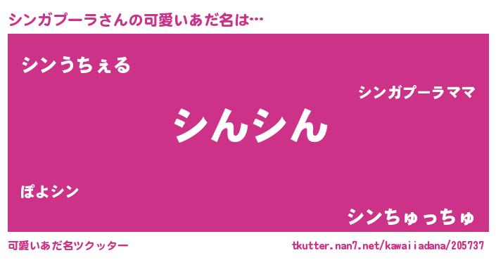 | 男性向けラノベタイトル風あだ名 | 『シンガプーラの憂鬱』 |
