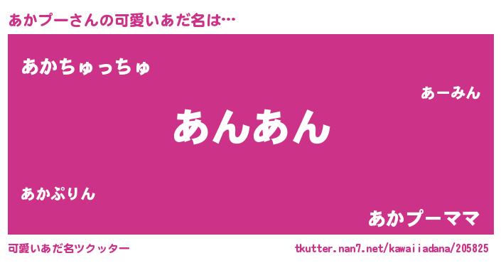| 意味不明あだ名 | 『ペロリンあかプー』『永久保存あかプー』 |