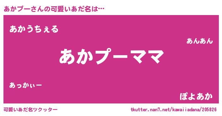 | 男性向けラノベタイトル風あだ名 | 『あかプーという概念が存在しない退屈な世界 』 |