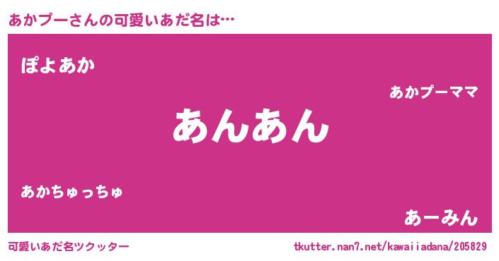 | 意味不明あだ名 | 『ペロリンあかプー』『永久保存あかプー』 |
