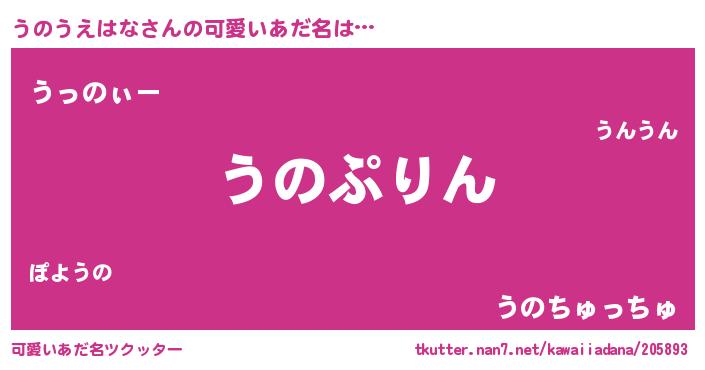 | ヘコむあだ名 | 『うのぷりん』『うのふぇ~』『豆乳』 |