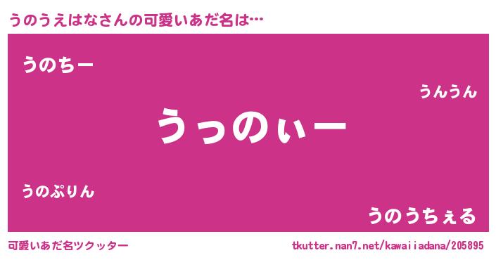| 男性向けラノベタイトル風あだ名 | 『うのうえはなの嫁は女の子じゃないと思った?』 |