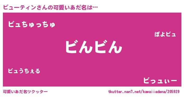 | 恥ずかしいあだ名 | 『プリティービューティン』『ビュっちょ』 |