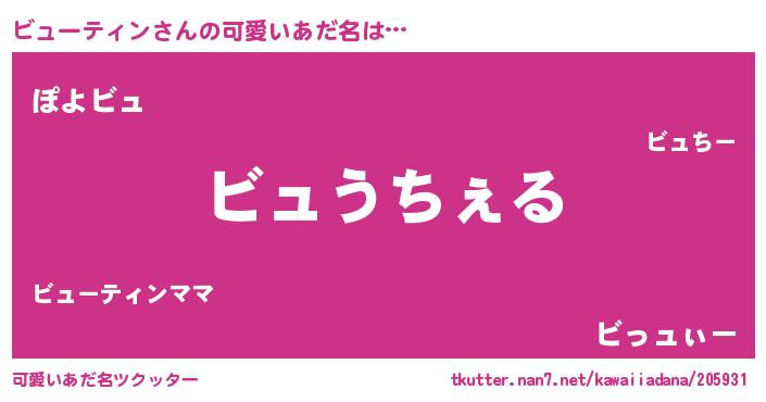 | 恥ずかしいあだ名 | 『ビューティンデラックス』『ビュっちょ』 |