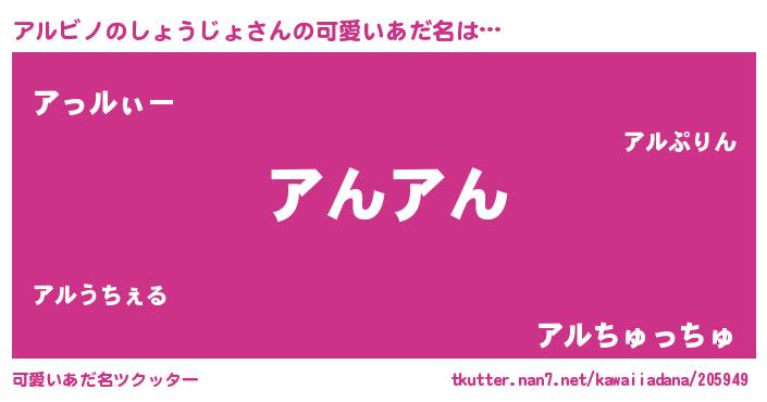 | 恥ずかしいあだ名 | 『プリティーアルビノのしょうじょ』 |