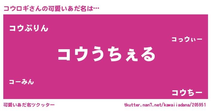 | ヒーロー風カッコイイあだ名 | 『超時空戦士コウロギ』『天弓騎士コウ』 |