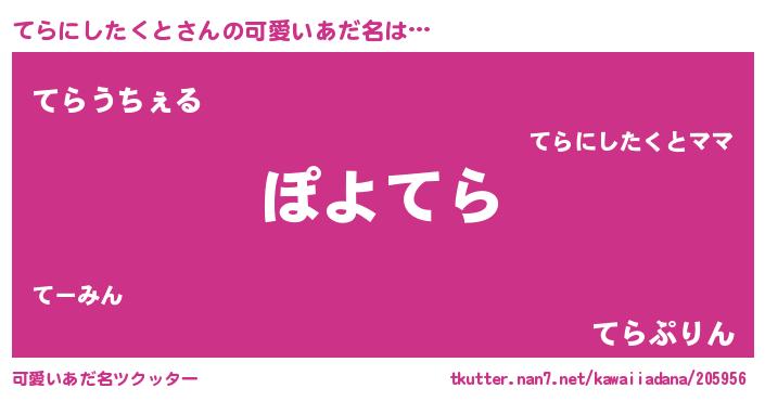 | ヘコむあだ名 | 『てらにしたくと(遠い目)』『つくし』 |