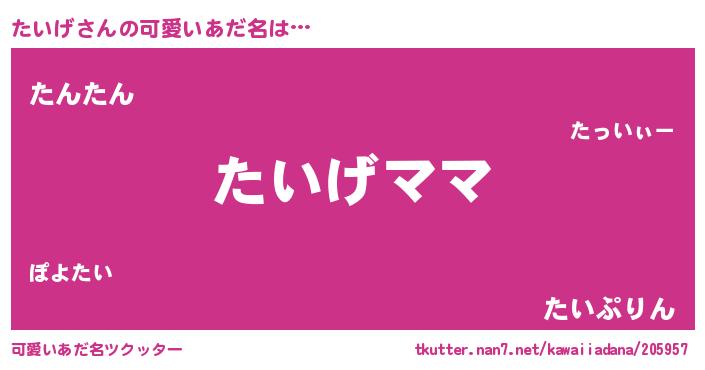 | ヘコむあだ名 | 『たいげ(震え声)』『たいもー』 |