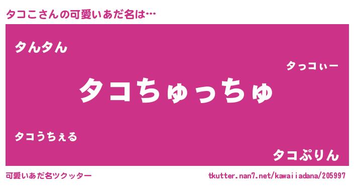 | ヒーロー風カッコイイあだ名 | 『慈愛の使者タコこ』『スーパータココ』 |