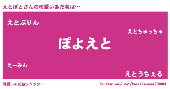 | 恥ずかしいあだ名 | 『エトポトデラックス』『えとっちょ』 |