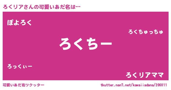 | 2回繰り返すあだ名 | 『ろろくく』『しゃかしゃか』 |