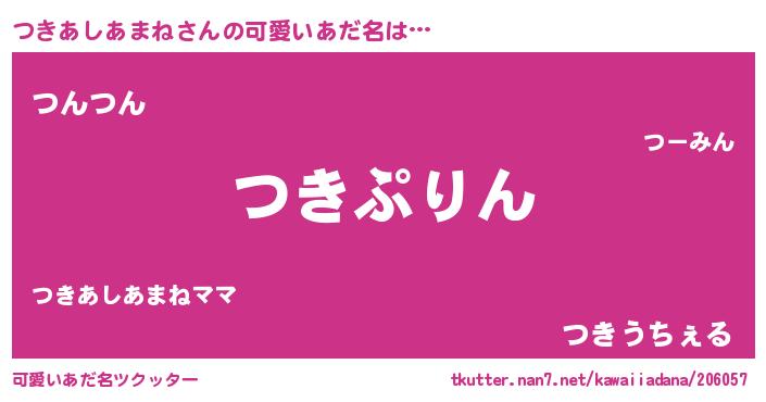| 恥ずかしいあだ名 | 『プリティーつきあしあまね』『つきちん』 |
