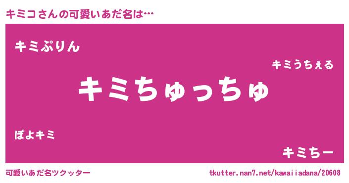 | 女子向けラノベタイトル風あだ名 | 『キミコ恋絵巻』『キミコの玉の輿計画!』 |
