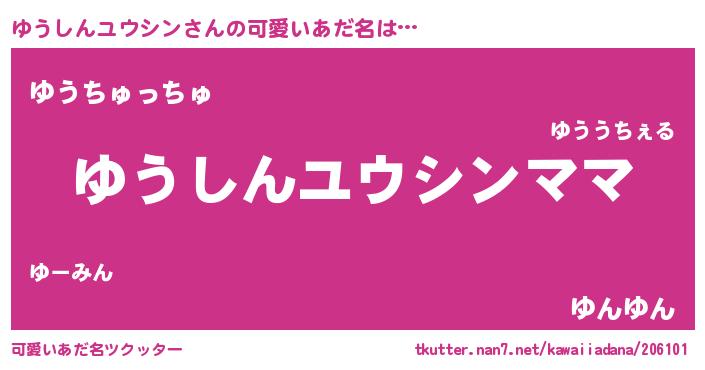 | 男性向けラノベタイトル風あだ名 | 『ゆうしんユウシンという概念が存在しない退屈な世界 』 |