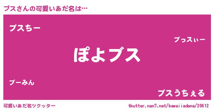 | 男性向けラノベタイトル風あだ名 | 『この素晴らしい世界にブスを!』 |