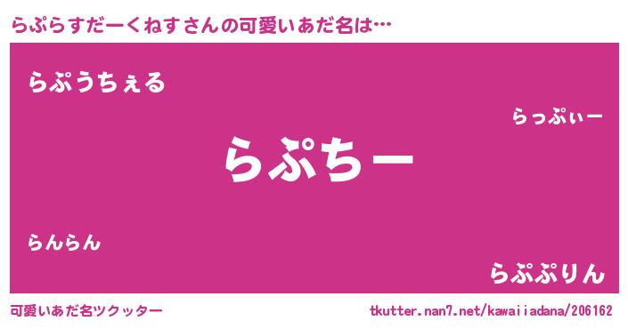 | ヘコむあだ名 | 『酢こんぶ』『らぷっぺ』『らぷにー』 |