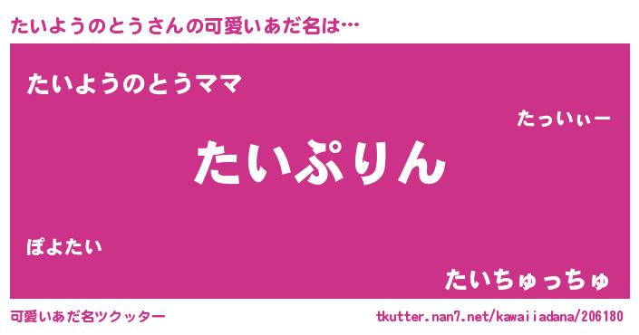 | ヘコむあだ名 | 『たいようのとう(笑)』『たいっちょ』 |