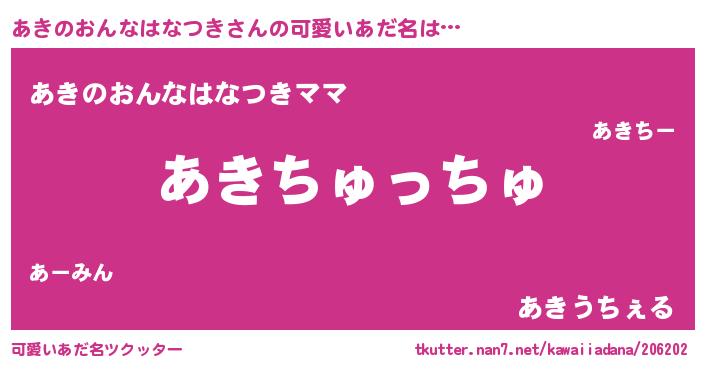 | ヘコむあだ名 | 『あきのおんなはなつき(爆)』『つくし』 |