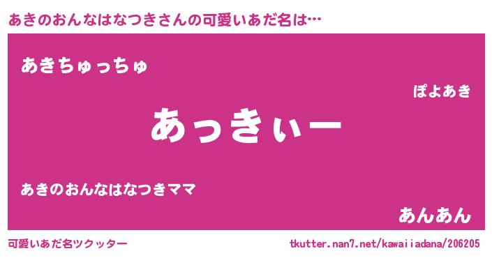 | 意味不明あだ名 | 『とにかく怪しいあきのおんなはなつき』 |