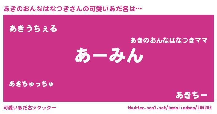 | ヘコむあだ名 | 『なまこ酢』『あきもー』『あきお』 |