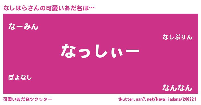 | ヘコむあだ名 | 『なしぷりん』『なしもー』 |