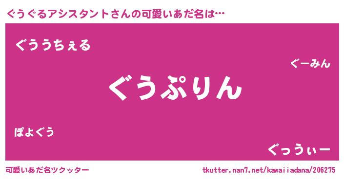 女子向けラノベタイトル風あだ名 | 『ぐうぐるアシスタントの玉の輿計画!』 |