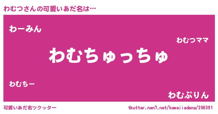 | ヘコむあだ名 | 『わむつ(爆)』『豆乳』『わむ太郎』 |