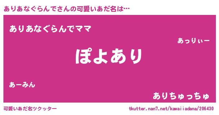 | 意味不明あだ名 | 『住所不定無職ありあなぐらんで(8歳)』 |
