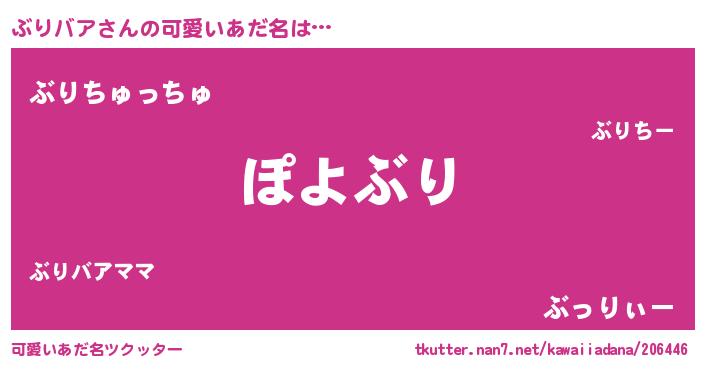 | 男性向けラノベタイトル風あだ名 | 『この素晴らしい世界にぶりバアを!』 |
