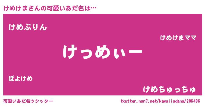 | ヘコむあだ名 | 『けめぷりん』『けめけま(遠い目)』 |