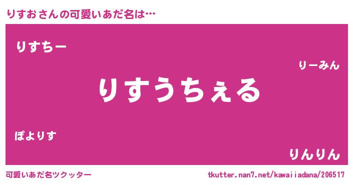 | 男性向けラノベタイトル風あだ名 | 『Re:りすおから始める異世界生活』 |