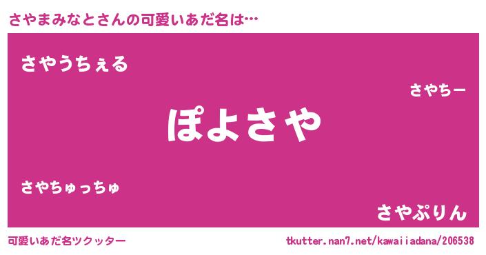 | 恥ずかしいあだ名 | 『サヤマミナトデラックス』『さやっちょ』 |