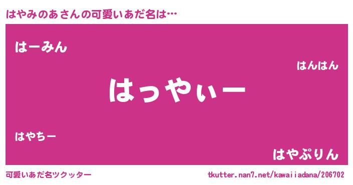 | 女子向けラノベタイトル風あだ名 | 『はやみのあ様がみてる』 |