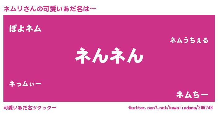| ポケモン風あだ名 | 『ネムチュウ』『ネームイ』 |