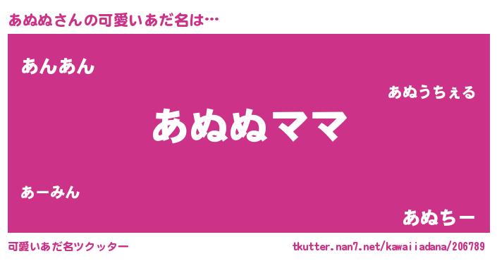 | 意味不明あだ名 | 『永久保存あぬぬ』『ペロリンあぬぬ』 |