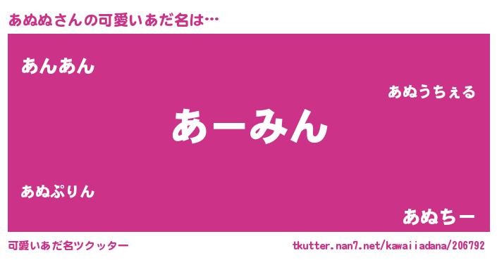 | 男性向けラノベタイトル風あだ名 | 『緋弾のアヌヌ』『あぬぬの憂鬱』 |