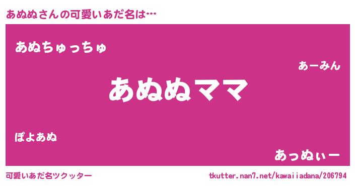 | ヘコむあだ名 | 『あぬぬ(爆)』『あぬぷりん』 |