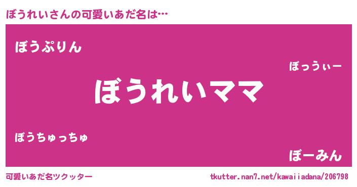 | ヘコむあだ名 | 『ぼうれい(笑)』『ぼう太郎』 |